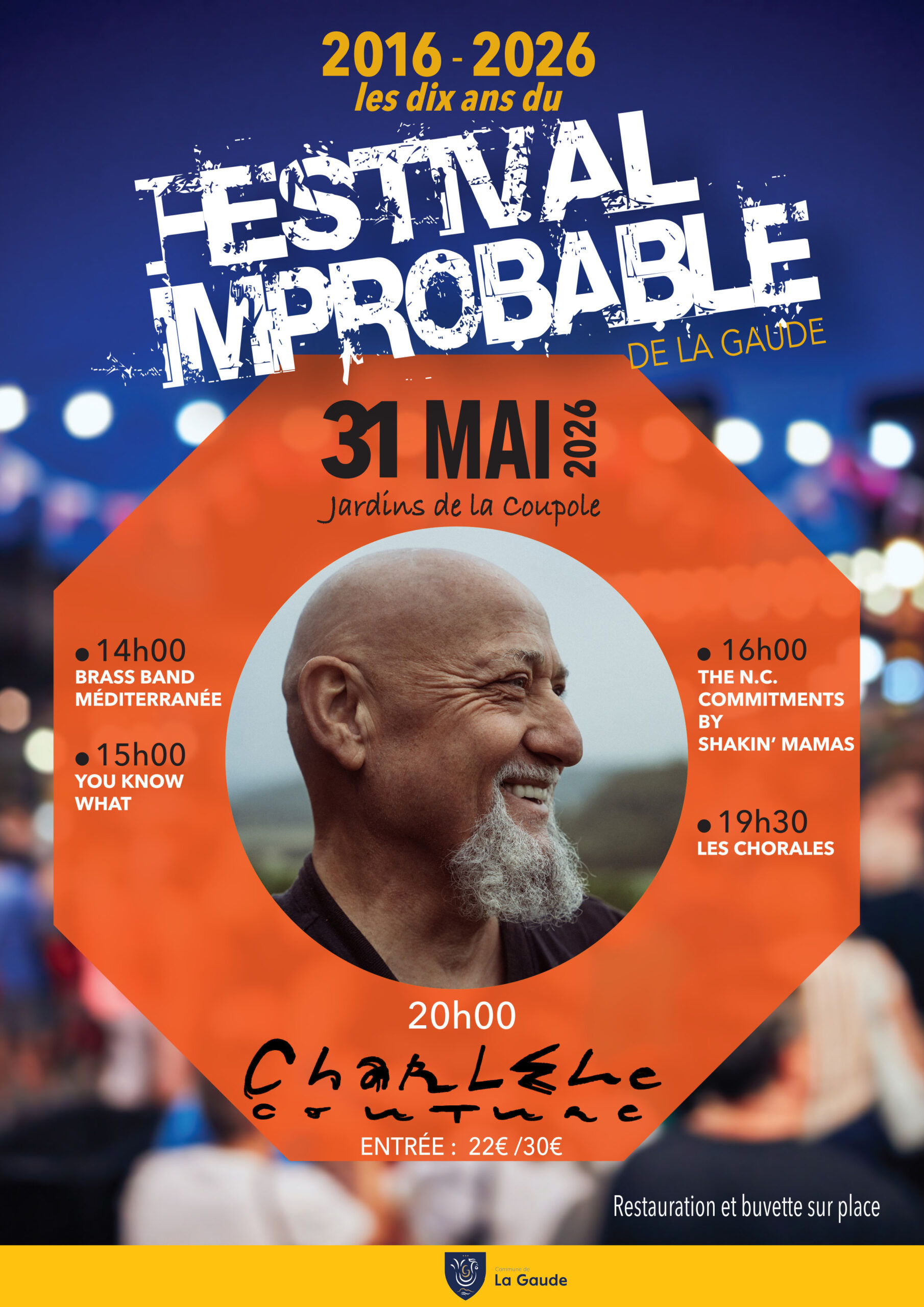 Rock, jazz, blues, pop, fanfares, chœurs, chanson française… En mai 2026, le Festival Improbable fait son grand retour aux jardins de la Coupole de La Gaude : Les 23, 24, 25, 29, 30 et 31 mai 2026.